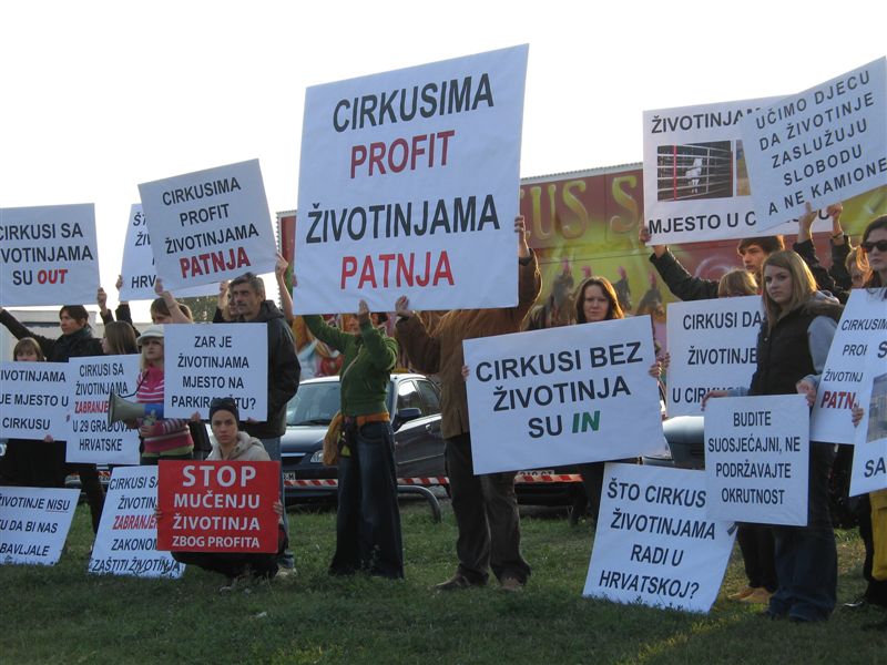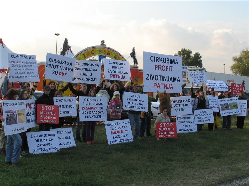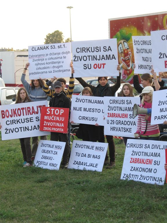 The protests will continue so animal rights activists together with other ethically aware citizens will gather on Saturday October 17 at 4:30 P.M. and 7:30 P.M. in front of Circus Safari on the eastern parking lot of the Zagreb Fair. The protests will be also held on Sunday and all other days during the circus' visit in town.