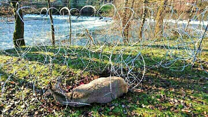 On the sidelines of the refugee crisis, there have been great suffering of animals at the Croatian borders with Hungary and Slovenia for months already. Razor-wire borders that are intersecting natural migration routes are lethal for wild animals. This is evidenced by disturbing images of animals trying to set free from jagged wire, making their wounds even deeper and causing serious injuries, choking, fractures and slow death.